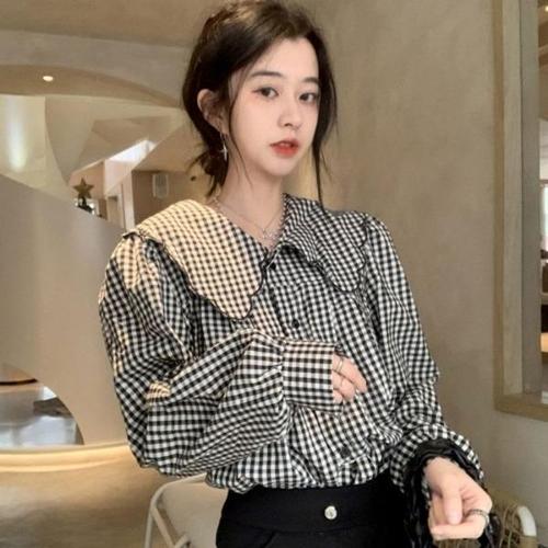 [엄지척]여성 큐티 여름 빅카라 체크블라우스 루즈핏 긴팔셔츠_19651142_667501