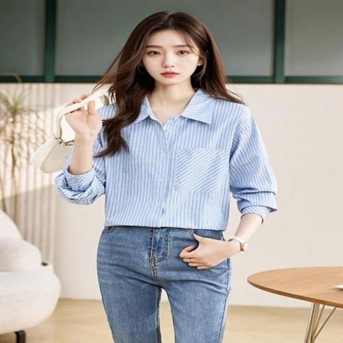 [엄지척]여성 소라컬러 빅카라 스트라이프 블라우스 셔츠 남방_19652171_667501