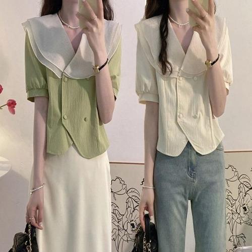 [엄지척]여자 쉬폰 빅카라 단정한 반팔 자켓 셔츠 블라우스_19650837_667501