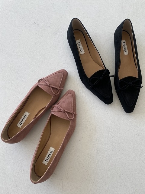 바바라 양가죽 러블리 배색 리본 여성 플랫 2cm_BBH502