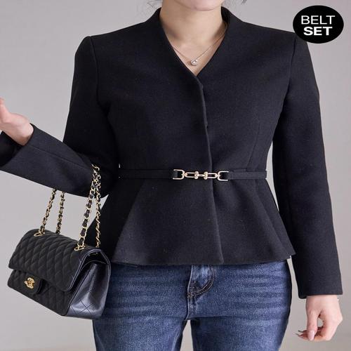 [모리스커밍홈][55-77]벨트SET 노카라 페플럼 모직 자켓_M2512JK065D