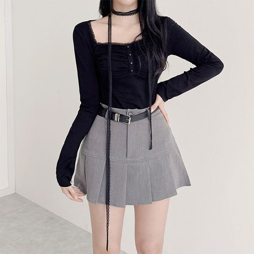 코키코키 / 빈티지힙/쫀쫀원단 코코빈 스퀘어넥 레이스 셔링 쫀쫀 초커 긴팔티