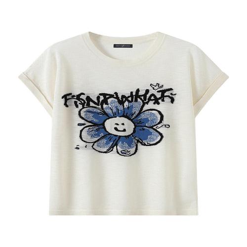 [나인식스뉴욕]빈티지 레터링 소매 롤업 반팔 니트 (NQ2KT038L0)