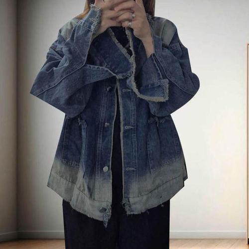 Skyciky 남녀공용 빅사이즈 더티 워싱 빈티지 청 자켓 봄가을 루즈핏 스트리트 브랜드 GG699