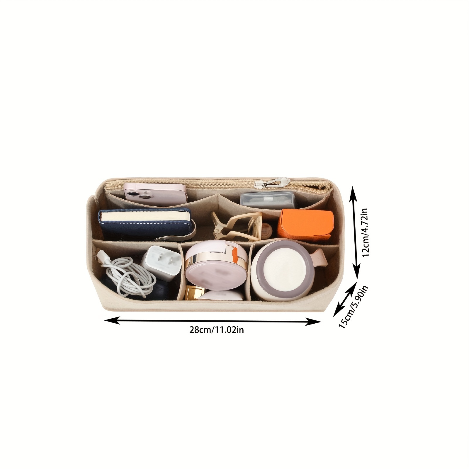 TEMU 메탈 지퍼가 있는 시크한 펠트 지갑 정리함 - 휴대폰, 충전기 및 여성 핸드백 액세서리용 멀티 포켓 수납