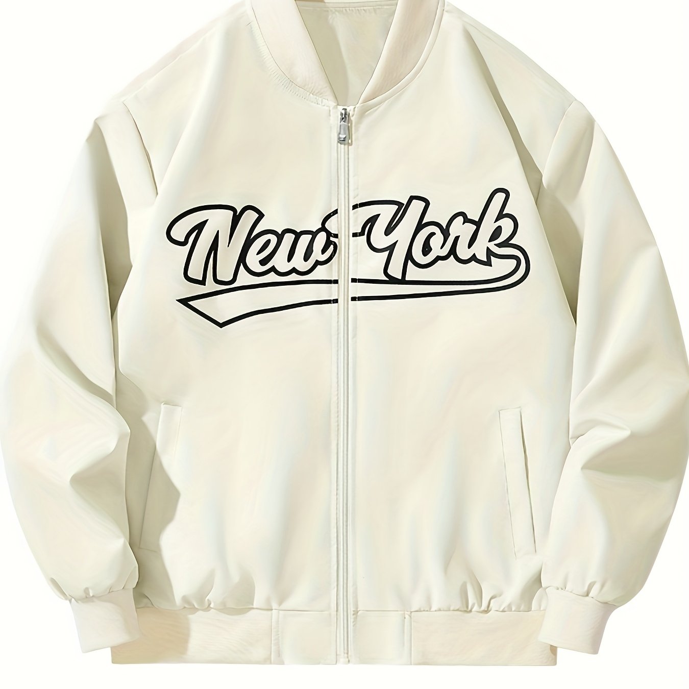 TEMU [기계 세탁 가능 폴리에스터] 남성 그래픽 베이스볼 재킷 - 블랙 스트리트웨어 지퍼업 코트, 리브드 커프스, 기계 세탁 가능 폴리에스터, 캐주얼 봄/가을 아우터