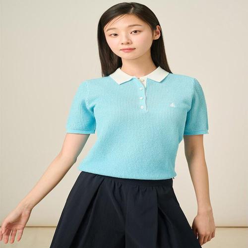 [빈폴레이디스][빈폴솔솔니트] 투톤 믹스 칼라넥 반소매 풀오버 - 스카이블루 (BF5451C11Q)