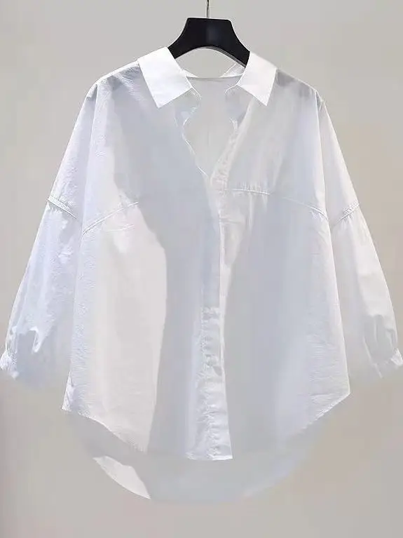 캐주얼 긴 소매 루즈한 디자인 통근 다용도 여성 셔츠 싱글 버튼 포켓 손수건 심플한 한국 스타일