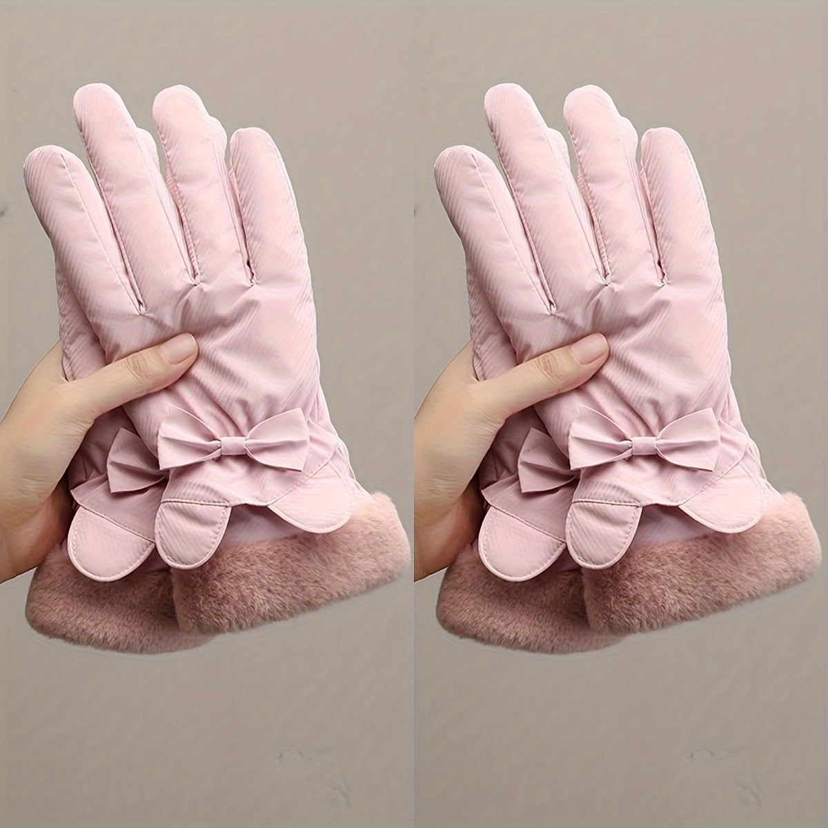 TEMU 1켤레 여아용 겨울 야외 따뜻한 장갑, 플리스 안감, 풀 핑거 디자인 (걷기 & 사이클링용), 손세탁 가능, 가을/겨울에 적합, 추수감사절 선물, 겨울 장갑, 추운 날씨 장비, 세련된 장갑 디자인, 부드러운 질감의 장갑