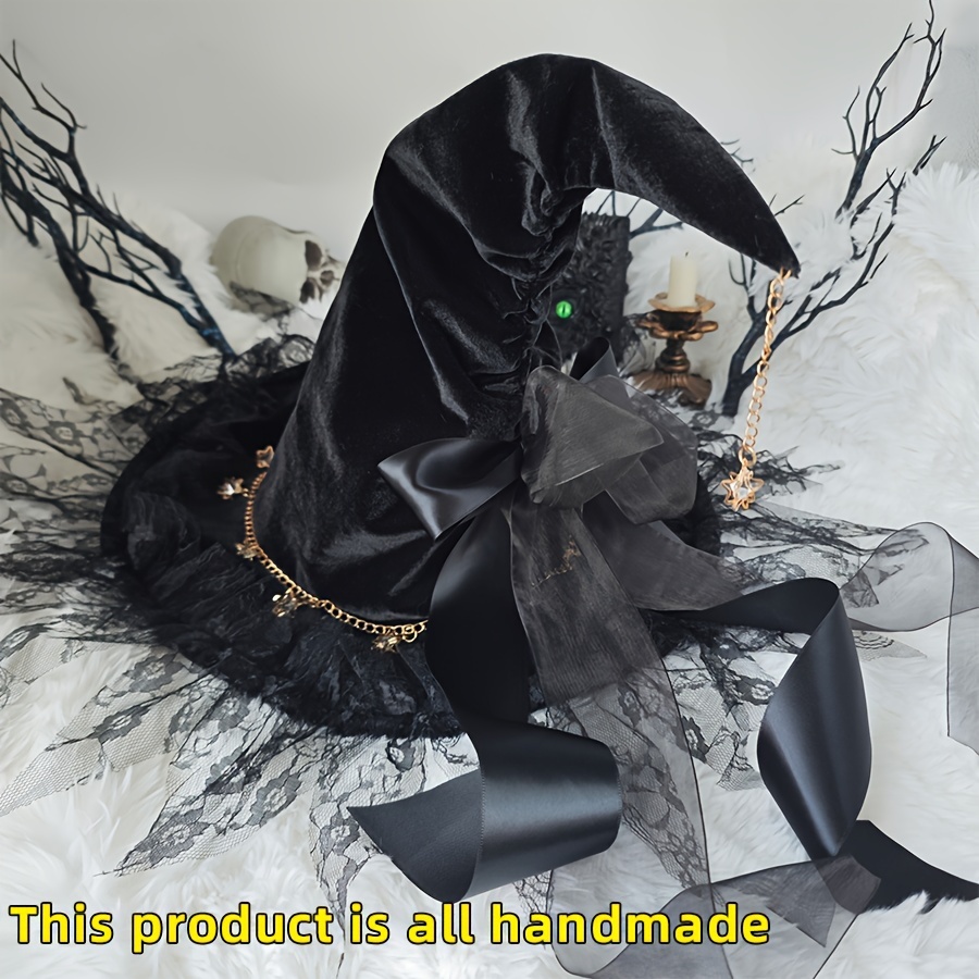 TEMU 수공예 레이스 마녀 모자와 밴디지 리본 - 할로윈 및 파티용 고딕 롤리타 스타일 코스프레 액세서리, 폴리에스터