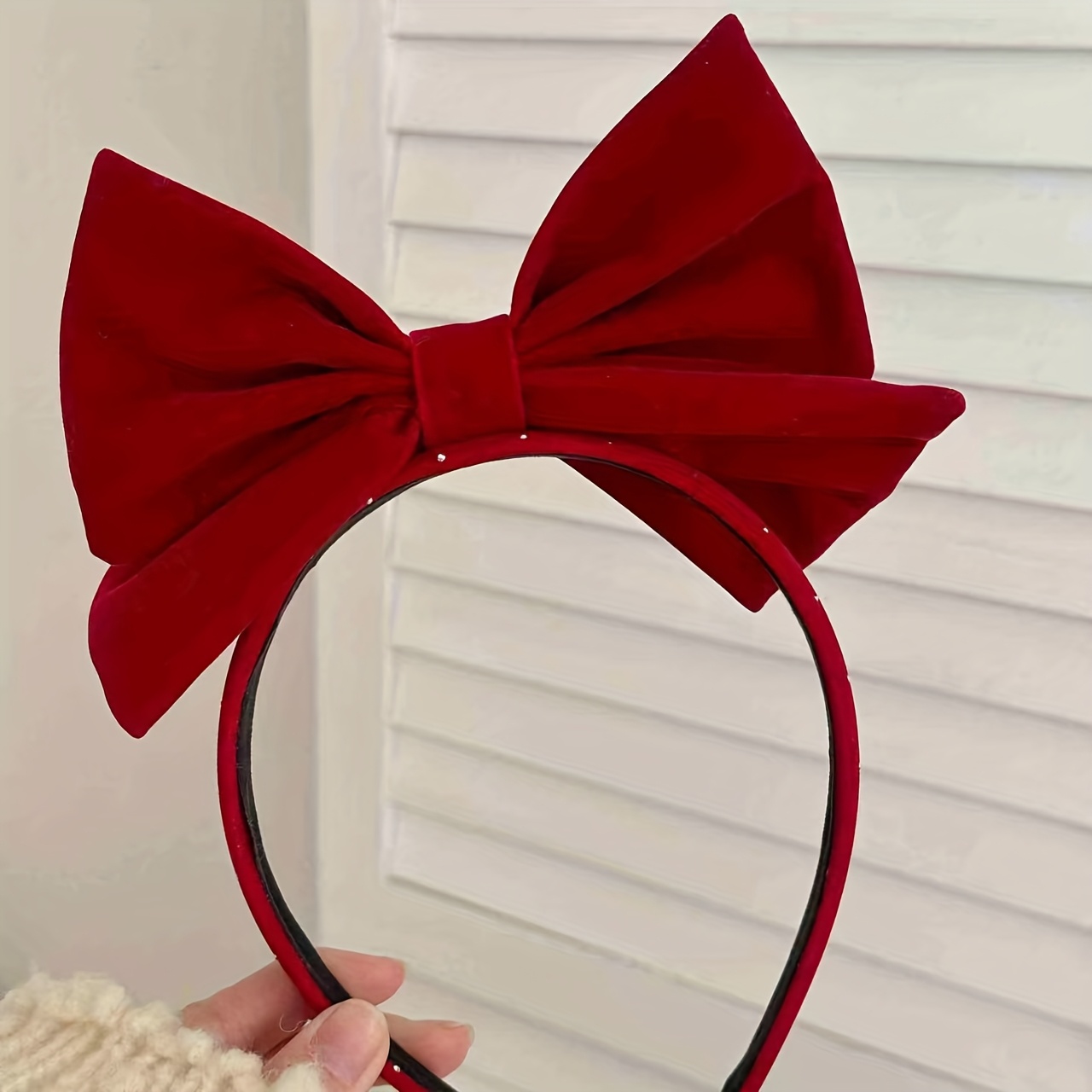 TEMU 여성용 우아한 레드 벨벳 리본 헤어밴드 - 깊은 버건디색 리본이 있는 고급 크리스마스 & 새해 파티 헤어밴드, 여성용 부드럽고 우아한 헤어 액세서리, 축제 헤어피스, 세련된 스타일, 내구성 좋은 헤어피스, 패션 헤어밴드, 쇼핑객