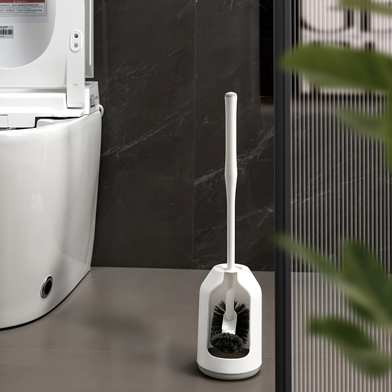 TEMU 곡선형 강모와 숨겨진 수납공간이 있는 변기솔 및 홀더 세트 - 구석구석 청소에 적합한 심층 세척, 컴팩트한 RV 욕실 액세서리, 공간 절약형, 작은 욕실용, 상업용 - 화이트 변기 청소 시스템