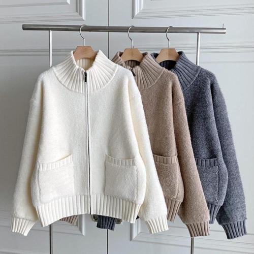 [신상오픈런]여성 캐주얼 반목 시보리 포켓 뽀글이 집업 가디건