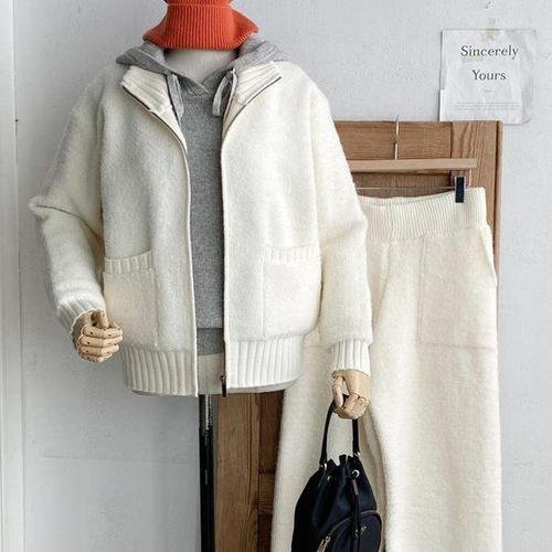 [옷자락] 여자 겨울 뽀글이 골지 박시핏 투웨이 집업 가디건