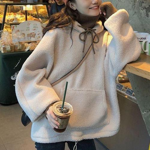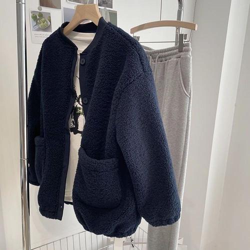 ANYOU 겨울 뽀글이자켓 부드러운 떡볶이 코트 여성 보들보들 아우터 두꺼운 램스울 코트