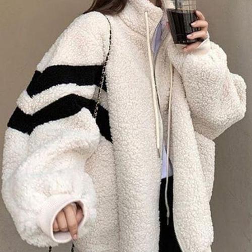 [에이치플러스몰]두줄 뽀글이 점퍼 따뜻한 데일리 오버핏 양털 자켓