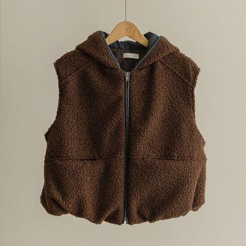 허니제이 / 디아먼 뽀글이 부클 후드 집업 조끼(4color)