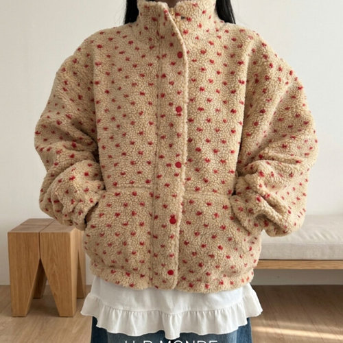 [유아몽드]겨울 여성 도트 뽀글이 자켓 하이넥 집업 땡땡이 덤블