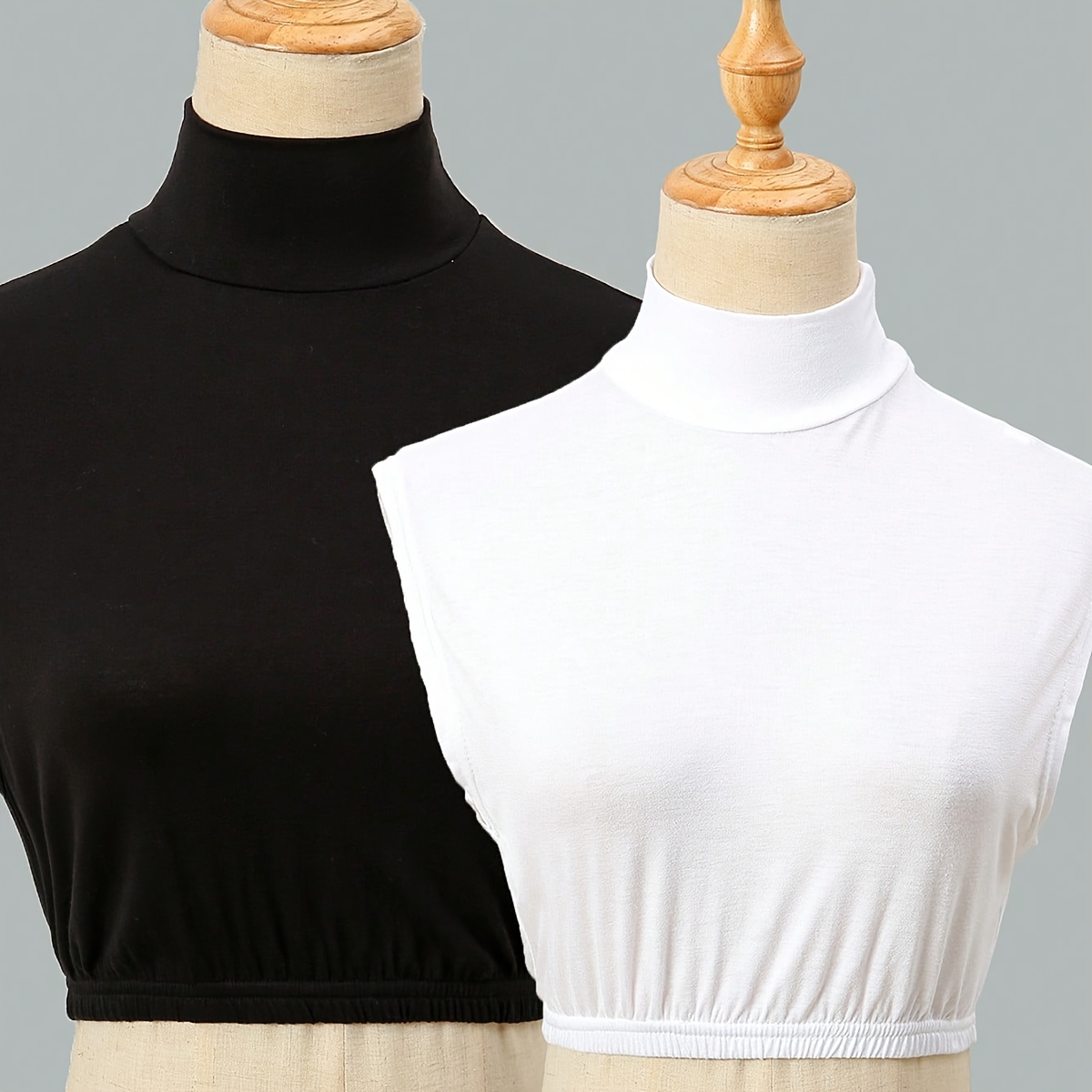 TEMU 여성용 우아한 하이넥 탱크탑 2개 세트 - 통기성 좋은 스트레치 솔리드 컬러 탑, 봄/여름용, 화이트 & 블랙, 캐주얼 또는 드레스룩에 완벽한 다재다능 패션 | 편안한 핏의 탱크탑
