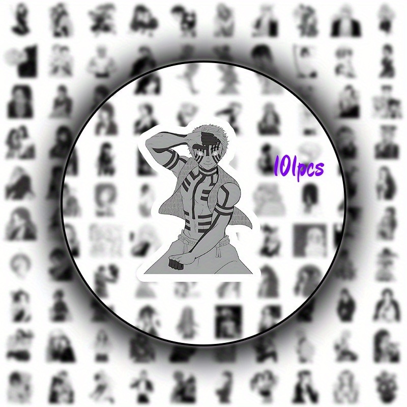 TEMU 101장 애니메이션 스티커 - 흑백 캐릭터, 감정 표현 얼굴, , 헬멧, 냉장고, 스크랩북, 저널 장식용 - 애니메이션 팬 & 일본 만화 아티스트를 위한 완벽한 액세서리, 래퍼트 데칼, 세밀 라인워크