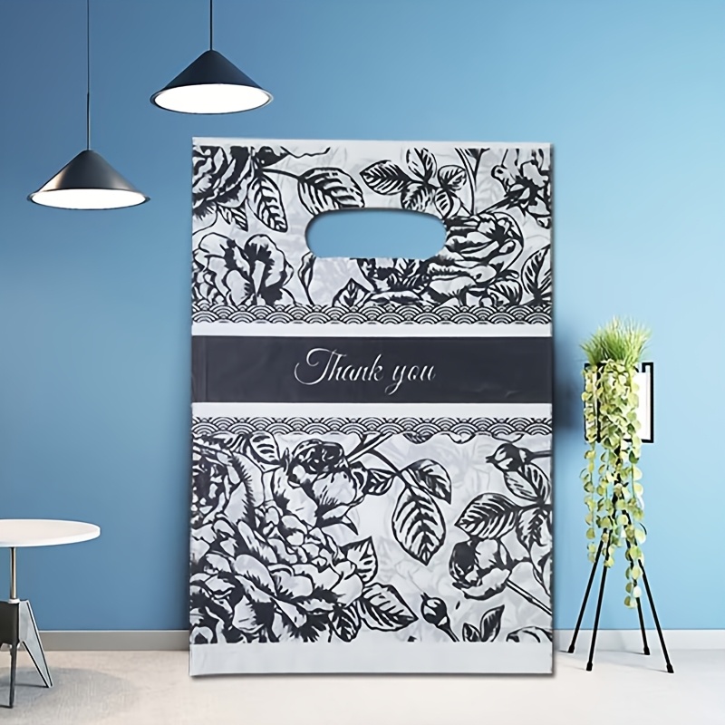 TEMU 100개입 화이트 플레인 컬러 플라워 감사 플라스틱 봉투, 다양한 사이즈, 웨딩, 생일, 추수감사절, 크리스마스, 비즈니스 선물, 매장, 의류, 파티, 재사용 가능한 플라스틱 봉투, 의류 매장 봉투, 선물 봉투, 포장 봉투, 토트백, 쇼핑백, 소매점 제품 봉투