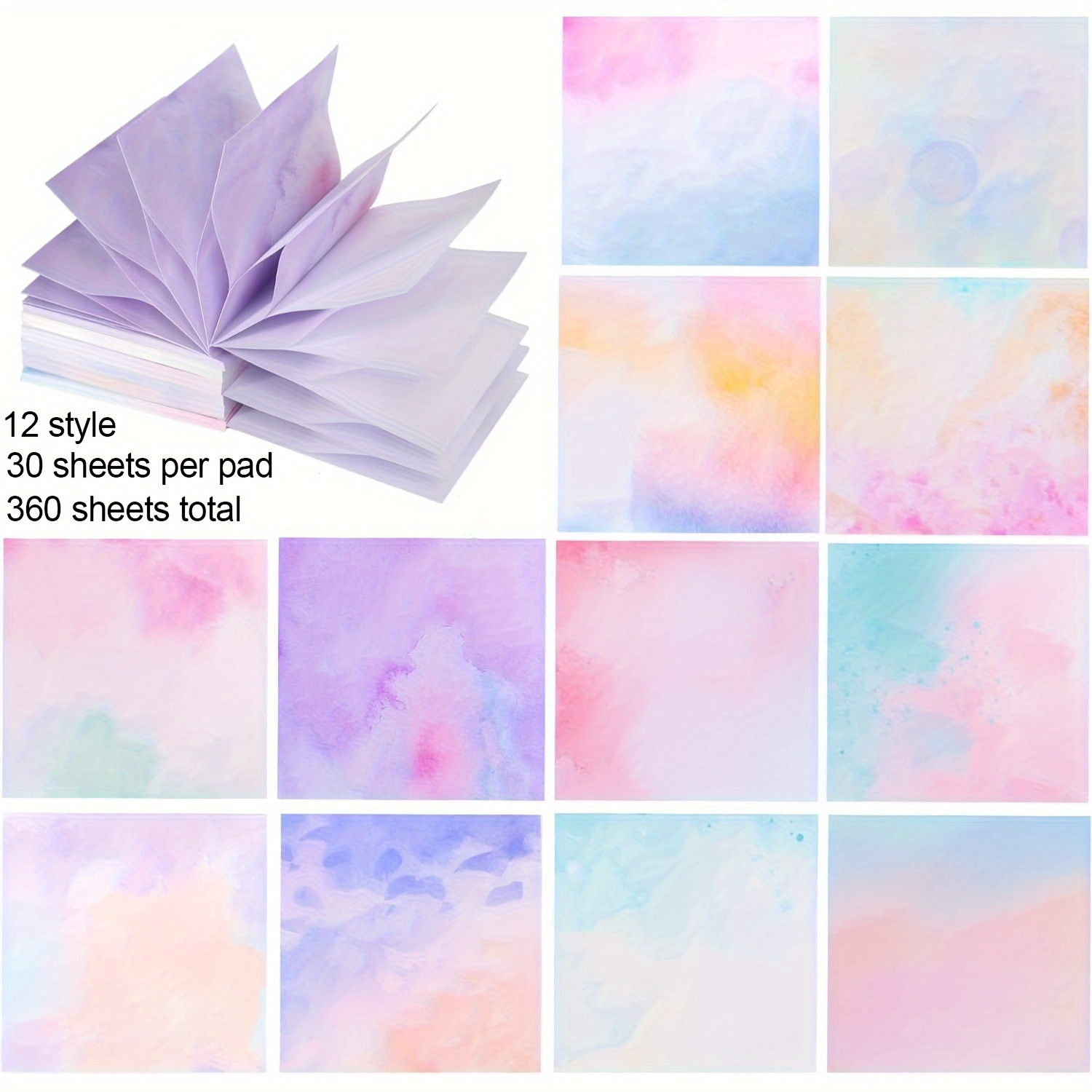 TEMU 12 패드 팝업 스티키 노트 3x3인치 - 귀여운 그라데이션 수채화 디자인, 초강력 접착 자체 스틱 메모 패드 (패드당 30장) 홈 오피스, 저널링, 플래너용 - 파스텔 색상, 고품질 종이, 노트 패드