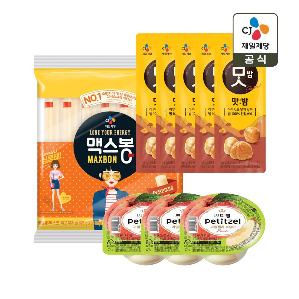 우리아이 간식세트(맥스봉 525g 1+맛밤5+쁘띠첼 복숭아3)