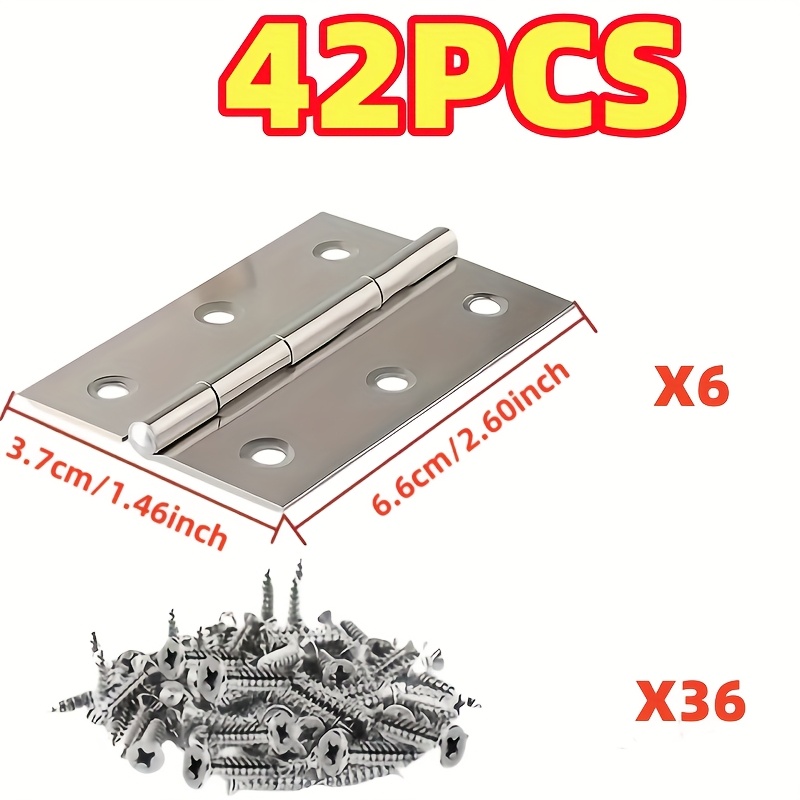 TEMU 42개 스테인리스 플랫 힌지 세트 - 내구성 강한 크롬 마감, 3.58인치 x 3.58인치, 캐비닛 및 창문용, 목재 상자 장식 하드웨어, 홈 데코 필수품, 클래식 디자인 힌지