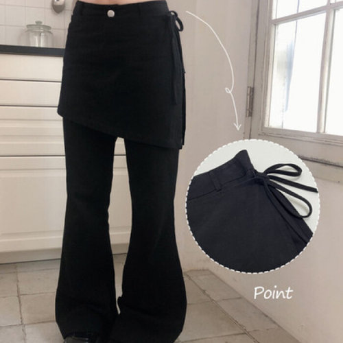 더핑크 / 러펠 사선 랩 스커트 레이어드 부츠컷 팬츠