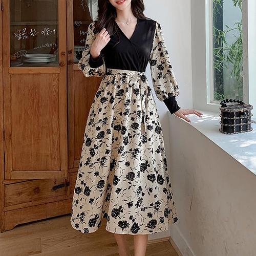 TEMU 여성용 우아한 체크무늬 스모크 웨이스트 스퀘어넥 드레스 - 핏감 좋은 긴소매 미디 드레스, 세탁기 사용 가능 사계절 캐주얼부터 포멀웨어까지, 긴소매 드레스
