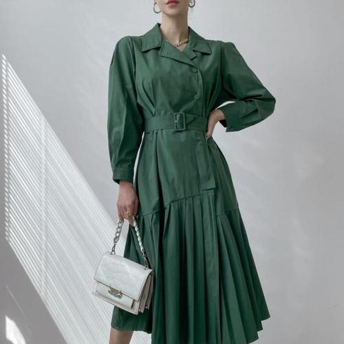 TEMU 중국 치파오 드레스 - 스탠드 칼라 긴팔 정장 드레스, 그리드/체크무늬, 세탁기 사용 가능, 사계절용 만다린 드레스 (여성용)