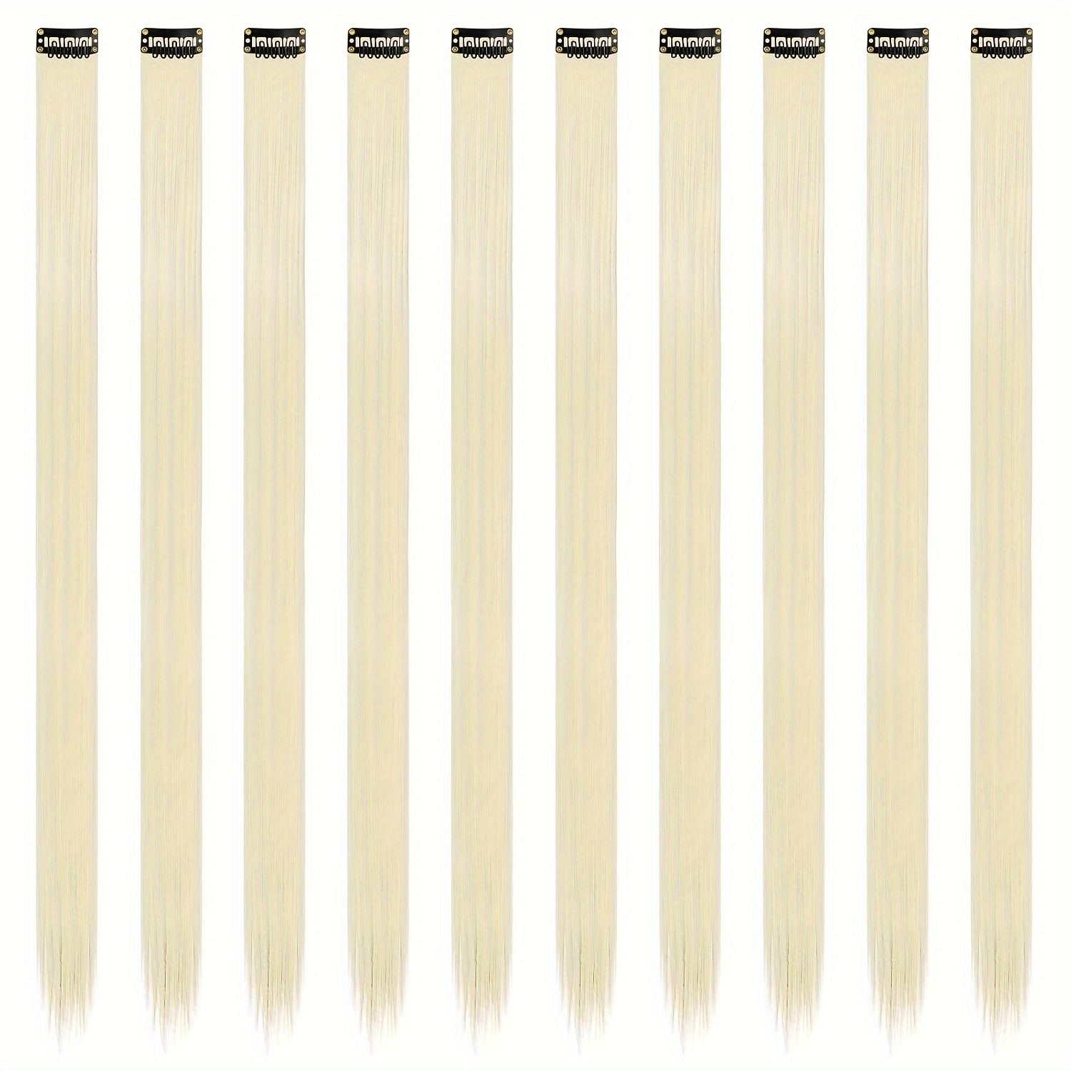TEMU 10개 플래티넘 블론드 클립인 헤어 익스텐션 - 여성 및 소녀를 위한 컬러풀 합성 헤어피스로 스타일을 강조, 일상 착용, 파티 및 휴일 선물에 완벽, 헤어피스, 할로윈 및 크리스마스 선물