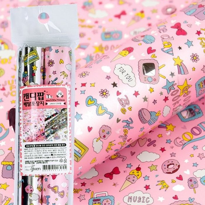비닐 증착 롤포장지 어린이집 선물포장지 -캔디팝 증착 비닐포장지 캐릭터