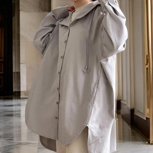 여자 언발 후드 롱셔츠 루즈 사파리 점퍼