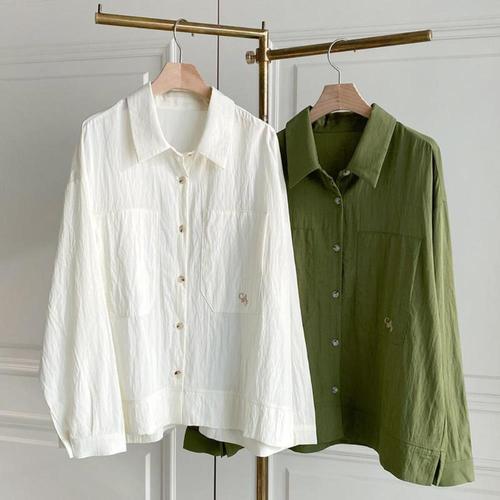 [다잇템]여자 사파리 카키색 봄블라우스 클래식 셔츠