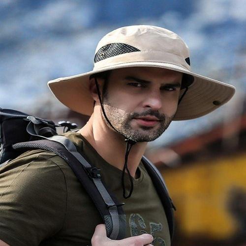 여름 남성 양동이 모자 야외 자외선 차단 와이드 브림 파나마 사파리 사냥 하이킹 모자 메쉬 어부 모자 비치 선 스크린 모자
