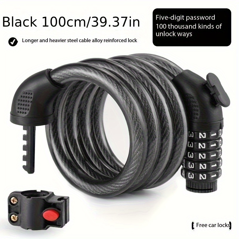 TEMU 고품질 & 방청 PVC 코팅 스틸 케이블이 있는 휴대용 자전거 U-락, 산악자전거 및 전기자전거용 핸드 컨트롤 다이얼 잠금장치 - 범용 블랙 도난방지 보안|전기자전거
