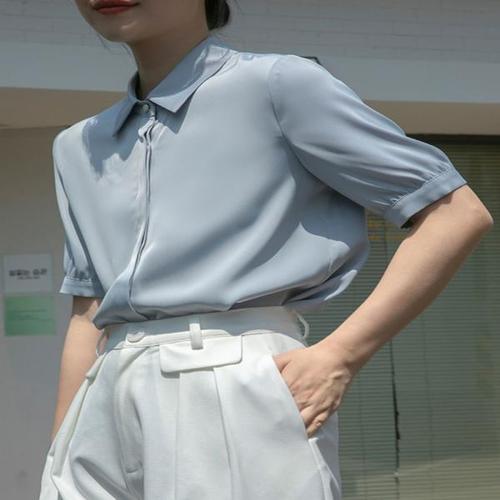 [엄지척]여성 심플 데일리 카라 새틴 반팔 셔츠 차르르 오피스_19652248_667501