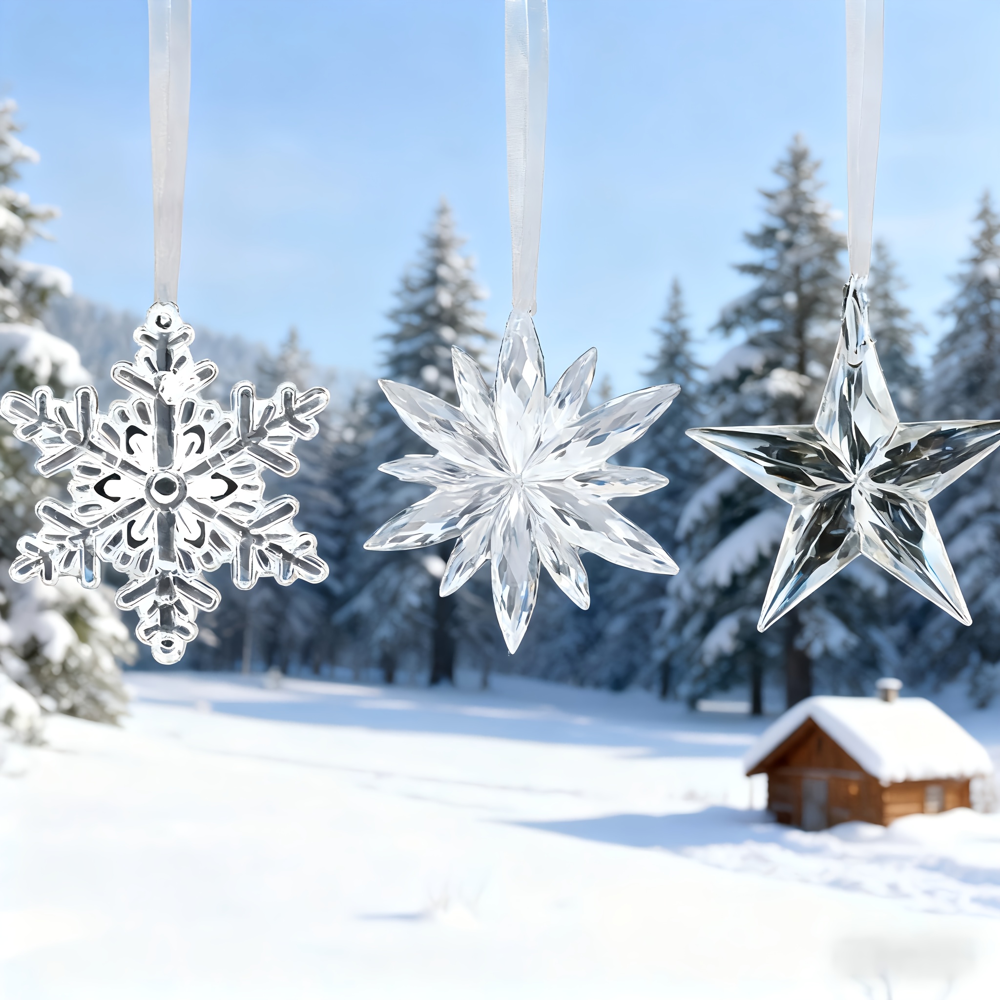 TEMU 2D 평면, 15개 크리스마스 트리 눈꽃 장식, 3D 디자인 아크릴 소재. 크리스마스, 할로윈 및 기타 휴일 장식에 완벽, 다양한 장면 DIY 액세서리, 끈 포함, 전기 필요 없음, 매년 재사용 가능