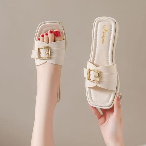 [BZJKPQTJ_4B]플랫 골드 버클 고급 낮은굽 데일리 샌들