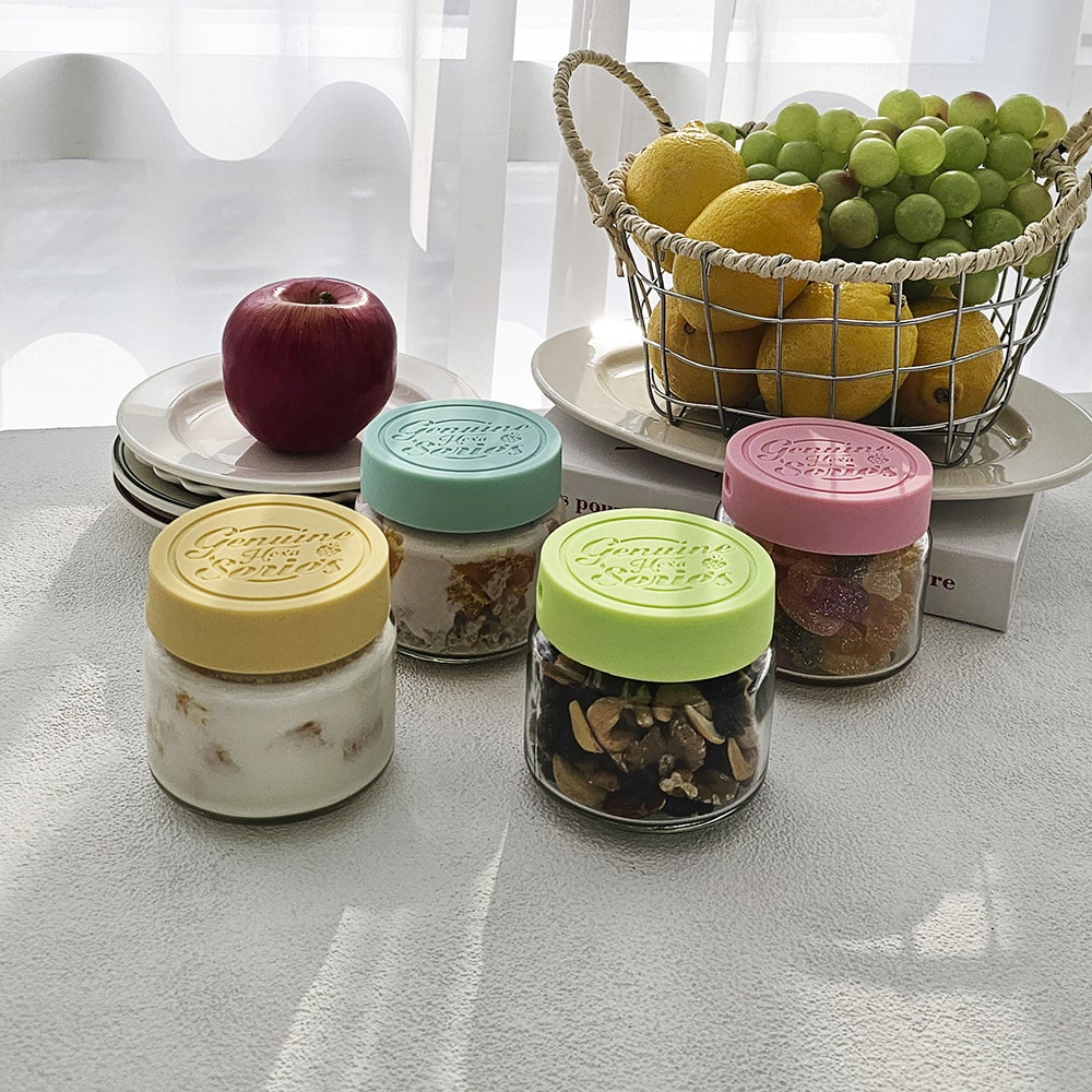 헥사 제뉴엔 실리콘뚜껑 샐러드 밀프랩 보틀 유리병 150ml SG210