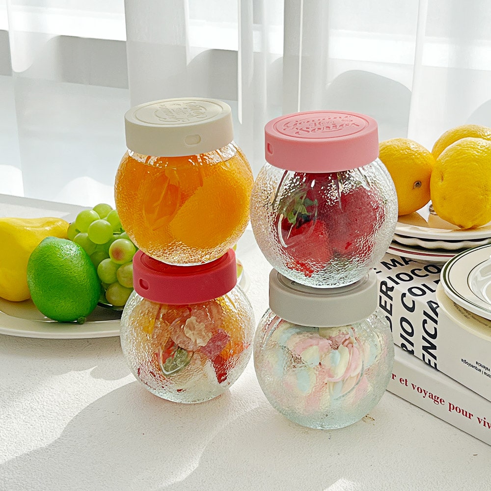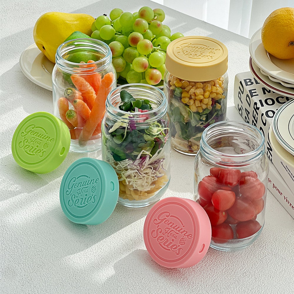 헥사 제뉴엔 실리콘뚜껑 샐러드 밀프랩 보틀 유리병 320ml YS375