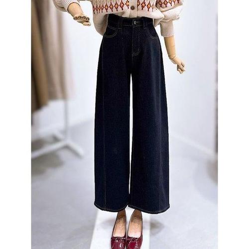 여자 봄 가을 겨울 따뜻한 기모 난스판 논페이드 생지 와이드 데님팬츠 핏이 예쁜 편한 통청바지
