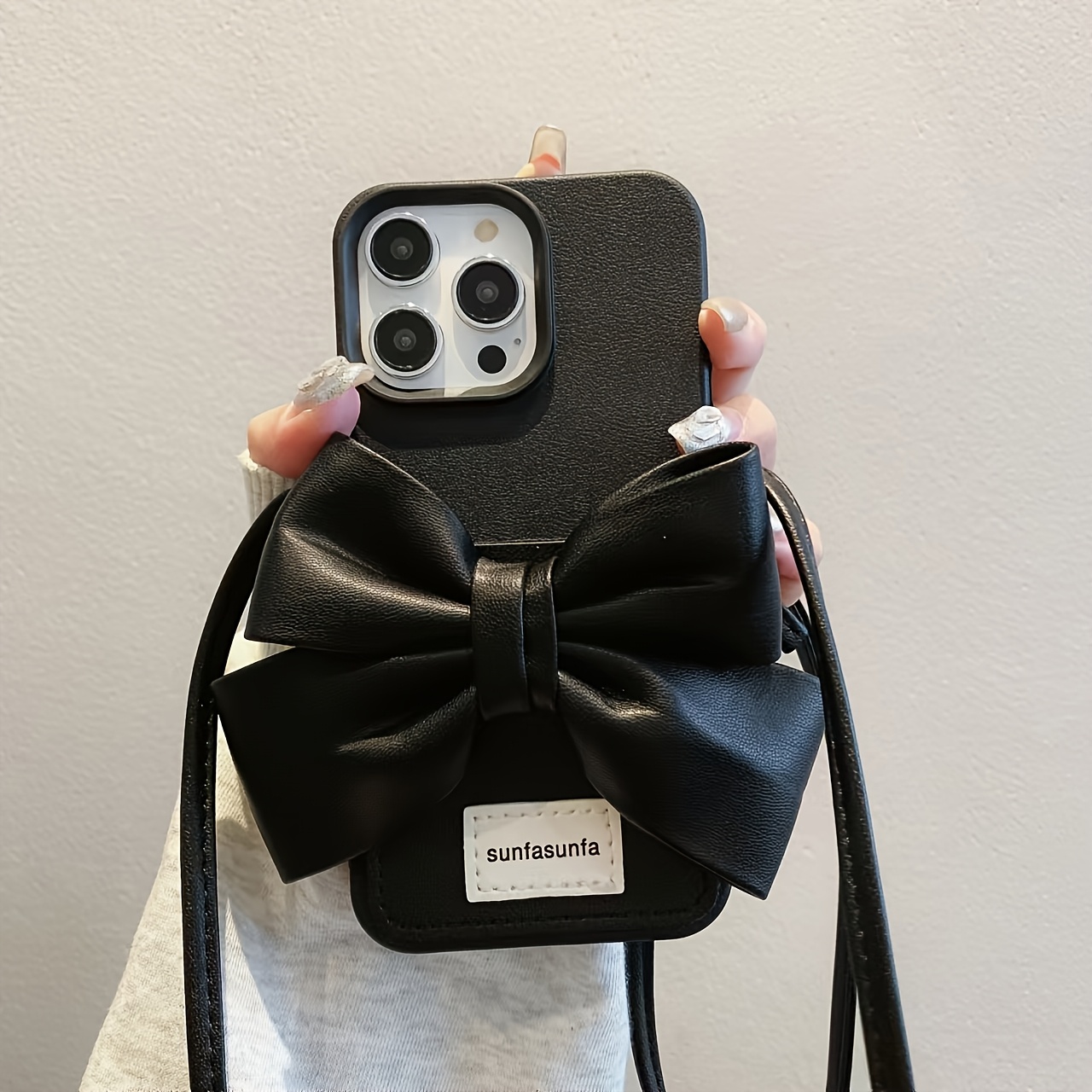 TEMU 새로운 스타일 소녀 리본 지갑, 아이폰 16 프로 맥스 폰 케이스에 적합, 애플 15 프로 크로스바디 스트랩