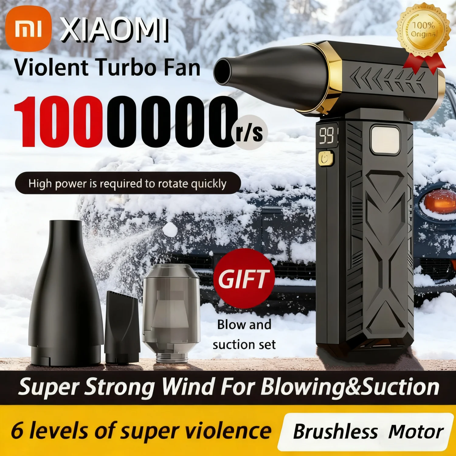 Xiaomi 터보 제트 송풍기 브러시리스 모터 전기 강력한 제트 팬 LED 라이트 디지털 디스플레이 USB 충전 휴대용 청소 도구