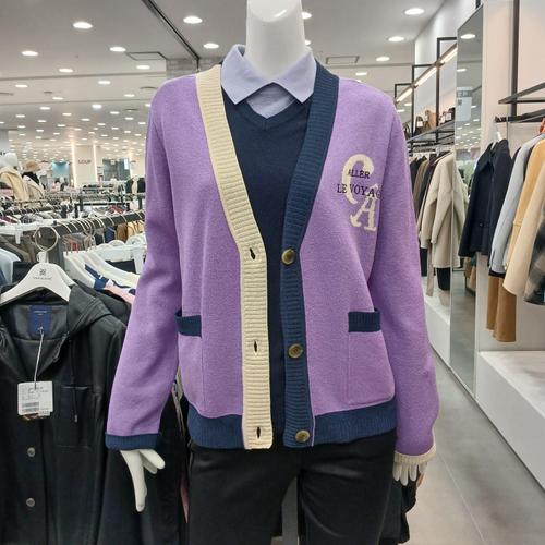 [샤트렌]유니크한컬러배색이 돋보이는브이넥 가디건 HCDSSW201