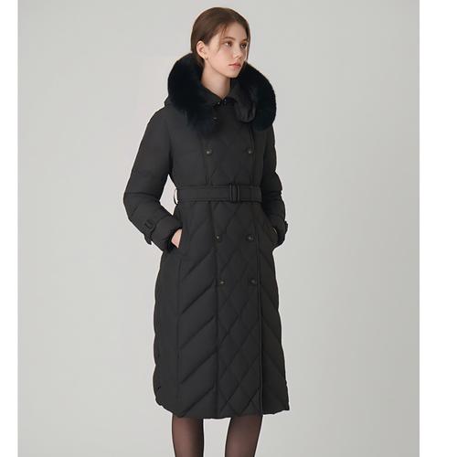 [샤틴]폭스퍼 카라 구스다운 벨티드 롱 패딩S254C874A04
