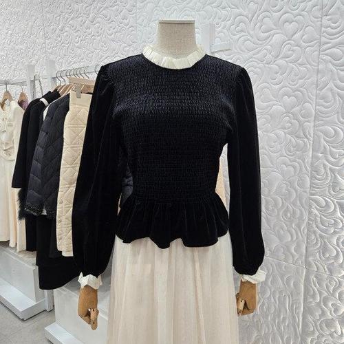[샤틴]셔링 스모킹 벨벳 블라우스 (S244K972)_DG