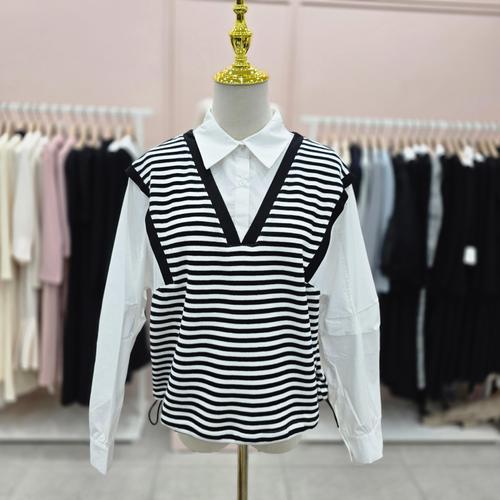 [샤틴]니트 카라 포인트 블라우스/S252B263