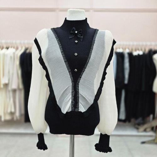 [샤틴]프릴배색 니트 블라우스S251K956A_JK